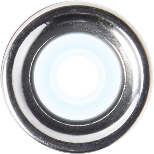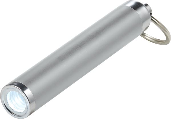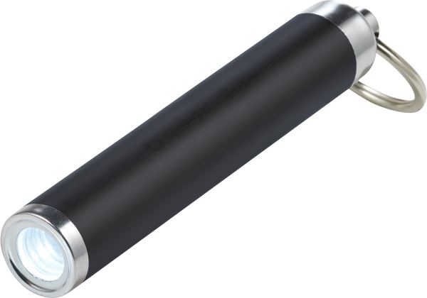 Pocket-sized LED flashlight with key ring. The glossy casing is especially designed for laser printing; the imprint will be illuminated when the flashlight is switched on. Operates on three cell batteries (included).